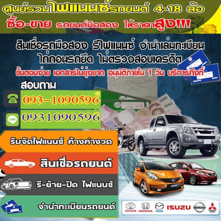 รีไฟแนนซ์จังหวัดเพชรบุรี โทร 093-1090596 สินเชื่อรถแลกเงิน รถเข้าไฟแนนซ์ ลิสซิ่ง อนุมัติไว