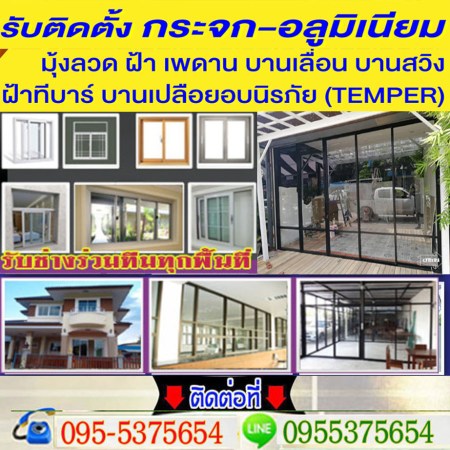 ติดตั้งกระจก ติดอะลูมิเนียม ช่างติดตั้งกระจก ประตูบานเลื่อน ประตูบานสวิง ประตูบานเปิด