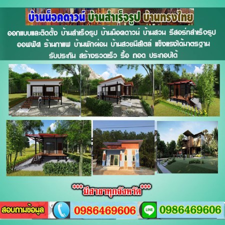 บ้านน๊อกดาว โทร 062-9935632 บ้านสำเร็จรูป บ้านสวน รีสอร์ท ออฟฟิศ ร้านกาแฟ